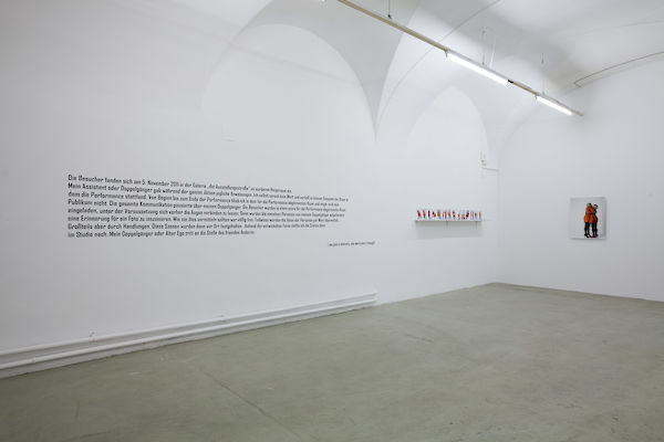 Die zweiteilige Performance I am just a memory, you were just a thought besteht aus einer „one on one“-Performance, die privat in einem abgedunkelten Raum stattfand und bei der der/die BesucherIn aufgefordert wurde, Erinnerungen zu inszenieren, die währenddessen dokumentarisch fotografiert werden. Im zweiten Teil werden diese Fotos im Studio ohne die bei der Performance anwesenden Personen re-inszeniert. Die großformatigen C-Prints? Das Video? Was ist das Endprodukt? zeigen eine Interaktion mit dem Vergangenen. Erinnerung wird zum Ereignis. Aktion wird zum Reenactment.