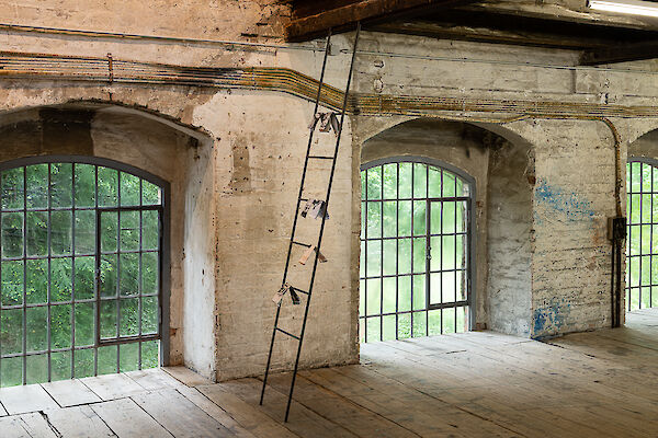 Materialisierte Ideen infiltrieren das leerstehende Fabriksgebäude, Gedanken breiten sich zu mehrdimensionalen Formen aus. Die Wahrnehmung der Außenwelt wird zum Echo.