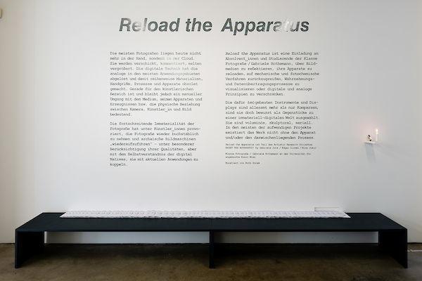Wenn Fotografien nicht mehr Papierbilder sind, die man in der Hand hält, sondern digitale Daten in der Cloud, bekommt der manuelle Umgang mit den Medien, ihren Werkzeugen und Apparaten bzw. die physische Beziehung zwischen Kamera und Künstler_innen eine neue Bedeutung. Ausgehend von dem künstlerischen Forschungsprojekt Reset the Apparatus! (Edgar Lissel, Gabriele Jutz und Nina Jukić), das vom österreichischen Wissenschaftsfond finanziert wird und an der Universität für angewandte Kunst Wien beheimatet ist, interpretieren 18 Absolvent_innen und Studierende der Klasse Fotografie / Gabriele Rothemann diese Thematik aus der Sicht digitaler Natives.